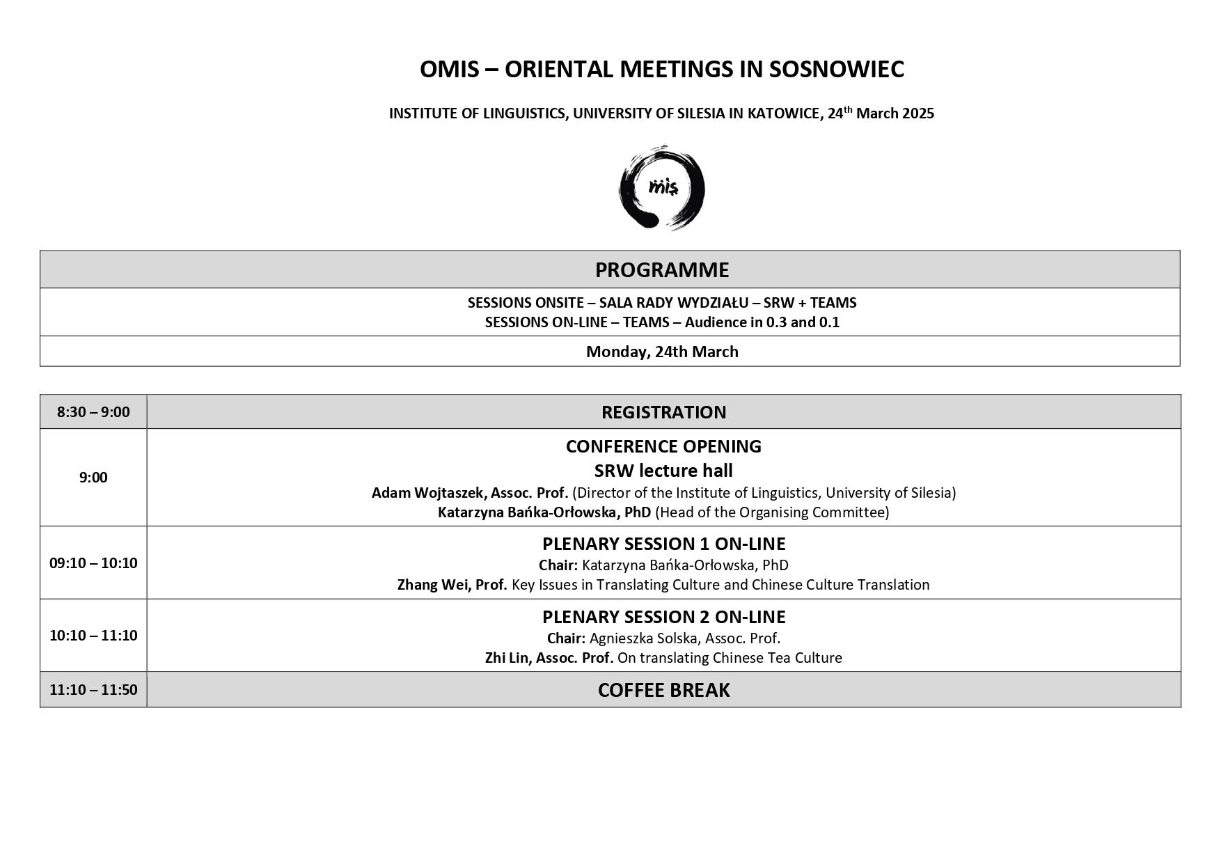 Abstract submission: Abstracts (no longer than 200 words, Times New Roman, 12 pts.) should be submitted in PDF or Word format to konferencja.omis@gmail.com, along with the filled registration form in a PDF format. The body of the email should contain the author’s first name and surname, affiliation and the title of the presentation.
